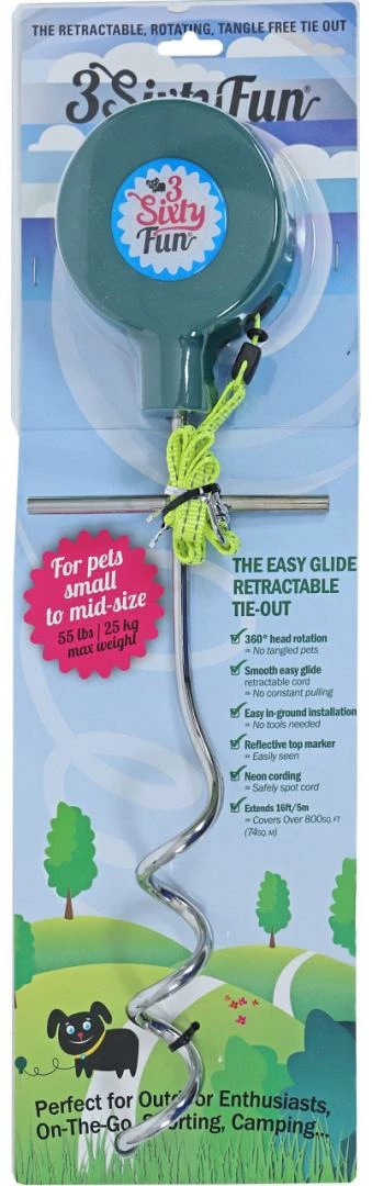 3SixtyFun Campingset Roterend is een vaste rollijn met optimale bewegingsvrijheid voor jouw hond. Ideaal voor op de camping! Geschikt voor honden met een maximaal gewicht van 25 kg. Je kan de 3 Sixtyfun gebruiken in je tuin of bijvoorbeeld op vakantie.