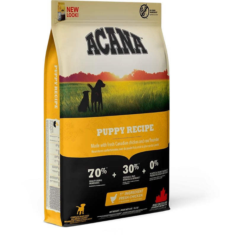 Bereid in onze gecertificeerde keukens in Canada is Acana Dog hondenvoer Puppy Recipe rijk aan lokaal gefokte scharrel kip, scharrel eieren, in het wild gevangen platvis, zongerijpt fruit en groenten – geleverd rijk aan voedingsstoffen en door boeren en telers uit onze regio zodat jouw puppy gezond, sterk en gelukkig kan zijn.