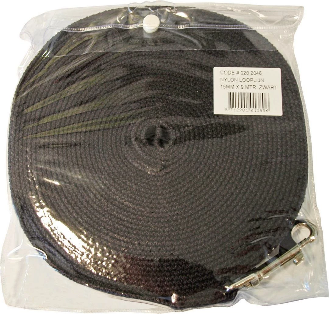 Deze zwarte platte nylon hondenlijn met handvat is met name handig als je met jouw hond wilt trainen.