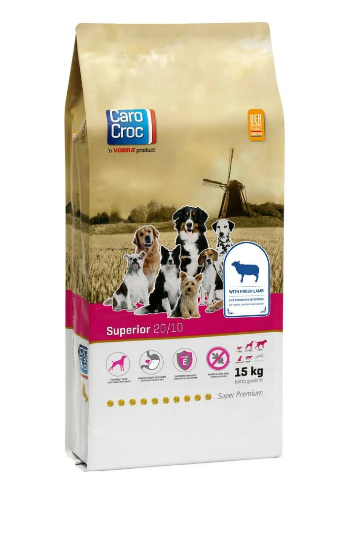 CaroCroc Superior is een volledig voer speciaal ontwikkeld voor honden met maag- darmproblemen, huid- en vachtproblemen en diarree door voedselovergevoeligheid. CaroCroc Superior bevat uitsluitend lam als dierlijke eiwitbron en rijst en maïs als koolhydraatbron en is tarwe (gluten) vrij.