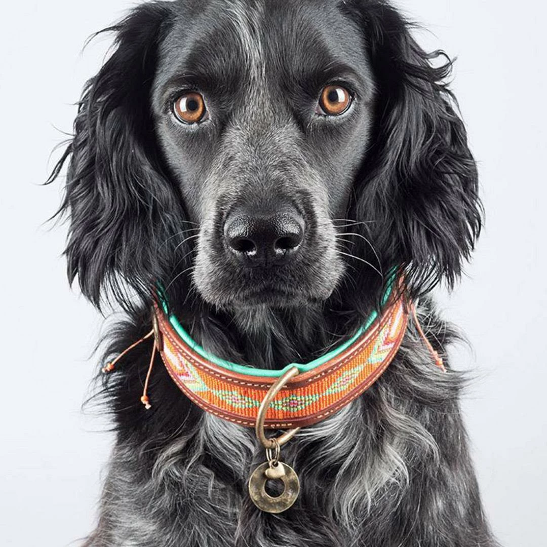 De Dog with a Mission Tiger Lily is een prachtige knal oranje leren hondenhalsband! De kralen zijn stevig in het leer genaaid en de binnenkant is gemaakt van zacht turquoise leer. Een absolute eyecatcher!