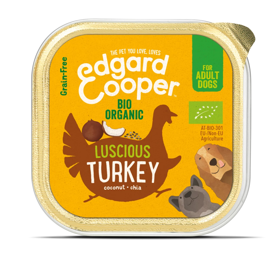 In Edgard & Cooper hondenvoer Adult biokalkoen wordt enkel verse biologische kalkoen gebruikt en absoluut geen bewerkte, overgare of gedroogde kalkoen of meel van kalkoen dat moeilijker is voor de buikjes om te verteren. Daarnaast wordt er een supergezonde mix van fruit, groenten en kruiden toegevoegd.