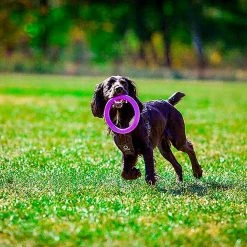 - Rennend: de hond vangt de Puller-ringen op en brengt ze één voor één terug. Als je hond de ring niet terug wil geven, laat hem dan de tweede zien. De oefening traint een hond om een voorwerp op te halen en helpt bij het ontwikkelen van snelheid en behendigheid.