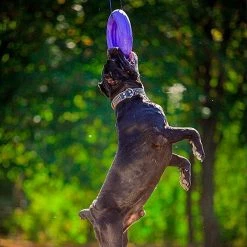 - Springen: de hond springt en vangt de Puller. Zodra je hond de ring grijpt, geef je in plaats daarvan een andere. De oefening traint het aandachts- en reactievermogen van je hond.