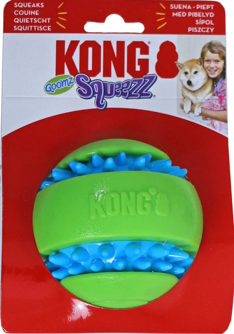 De Kong Squeez Goomz Ball met verhoogde noppen masseren de tanden en het tandvlees van je hond. Verschillende texturen en een duurzaam materiaal bevorderen het plezier voor jouw hond terwijl er ook aan de natuurlijke instincten wordt voldaan. De pieper zorgt voor extra aantrekking en de bal is geschikt voor zowel binnen als buiten.
