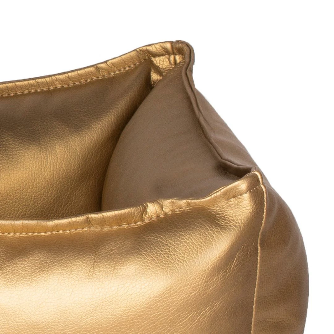De Lex & Max hondenmand Goud is een prachtige stijlvolle mand met stevige opstaande wanden. De wanden zijn dusdanig gevuld dat je hond er heerlijk tegenaan kan liggen of zijn kop er op kan laten rusten, zonder dat het inzakt. De hoes is gemaakt van een hoge kwaliteit Eco-leather. Eco-leather is een sterk en soepel materiaal dat nauwelijks te onderscheiden is van echt leer. Daarentegen bevat dit materiaal geen dierlijke stoffen en is daarom minder belastend voor het milieu.