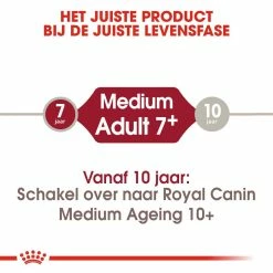 Royal Canin Medium Adult 7+ is hondenvoer voor middelgrote oudere honden vanaf 7 jaar met een volwassen gewicht van 11 tot 25 kilo.