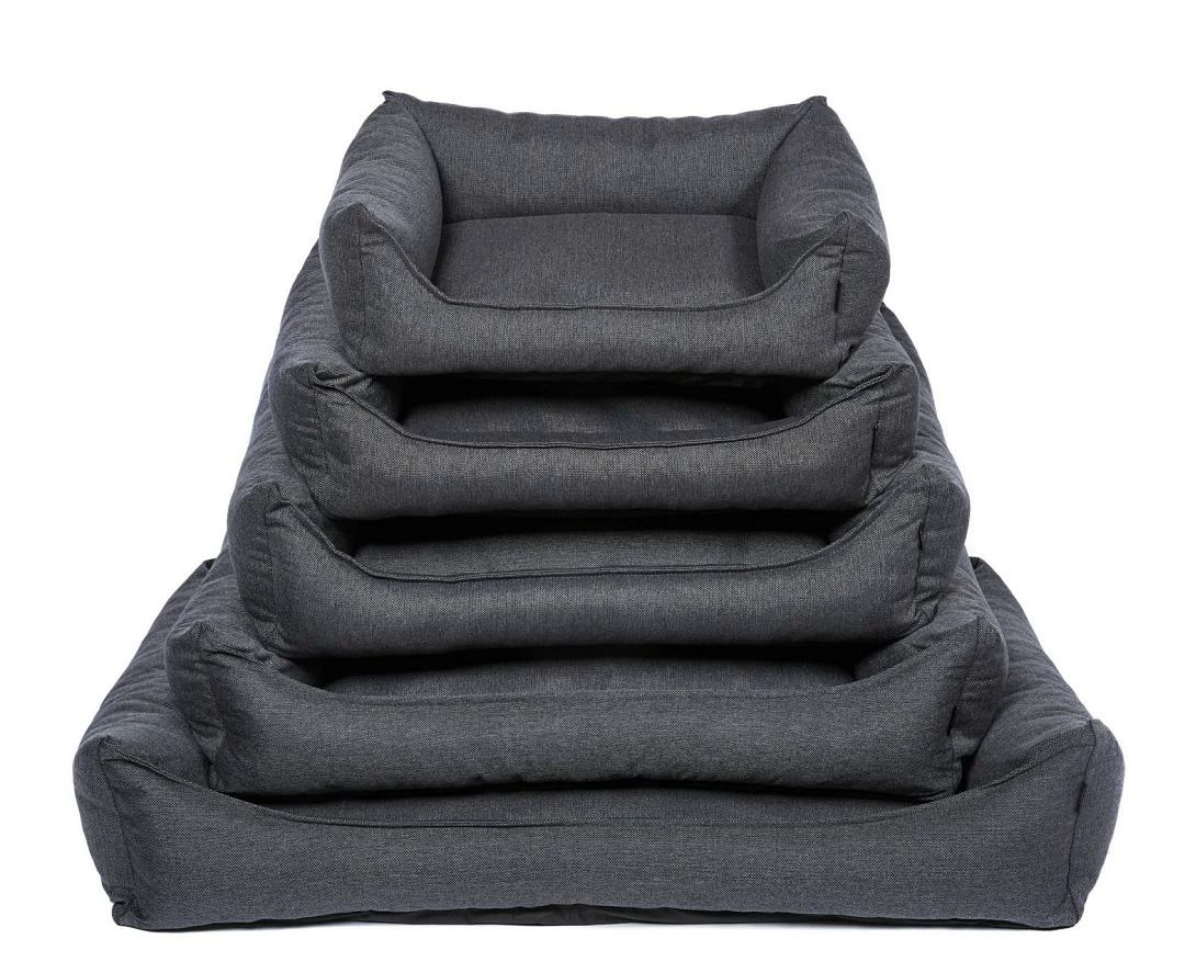 Het slijtvaste materiaal heeft een gemêleerde kleur en geeft de hondenmand een speelse doch chique touch. Door de stevige vulling van gemalen koudschuim kan de hond lekker met zijn of haar kop op de rand liggen.
