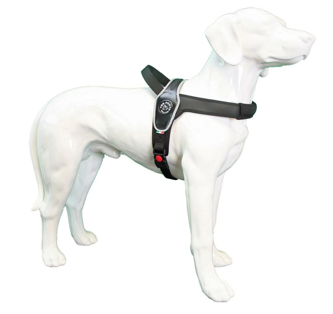 De Primo serie van Tre Ponti is ontwikkeld als ‘allround’ tuig en geschikt voor honden van 10 tot en met 60 kg. Het tuig gaat over het hoofd van de hond en wordt onderin ingesteld en vastgeklikt met een slot sluiting. Â